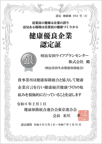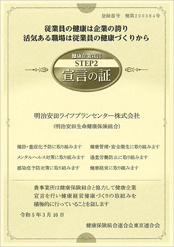当社は、明治安田生命健康保険組合を通じて健康企業宣言を行ない、継続して健康経営および健康づくりの取組みを積極的に実施しております。